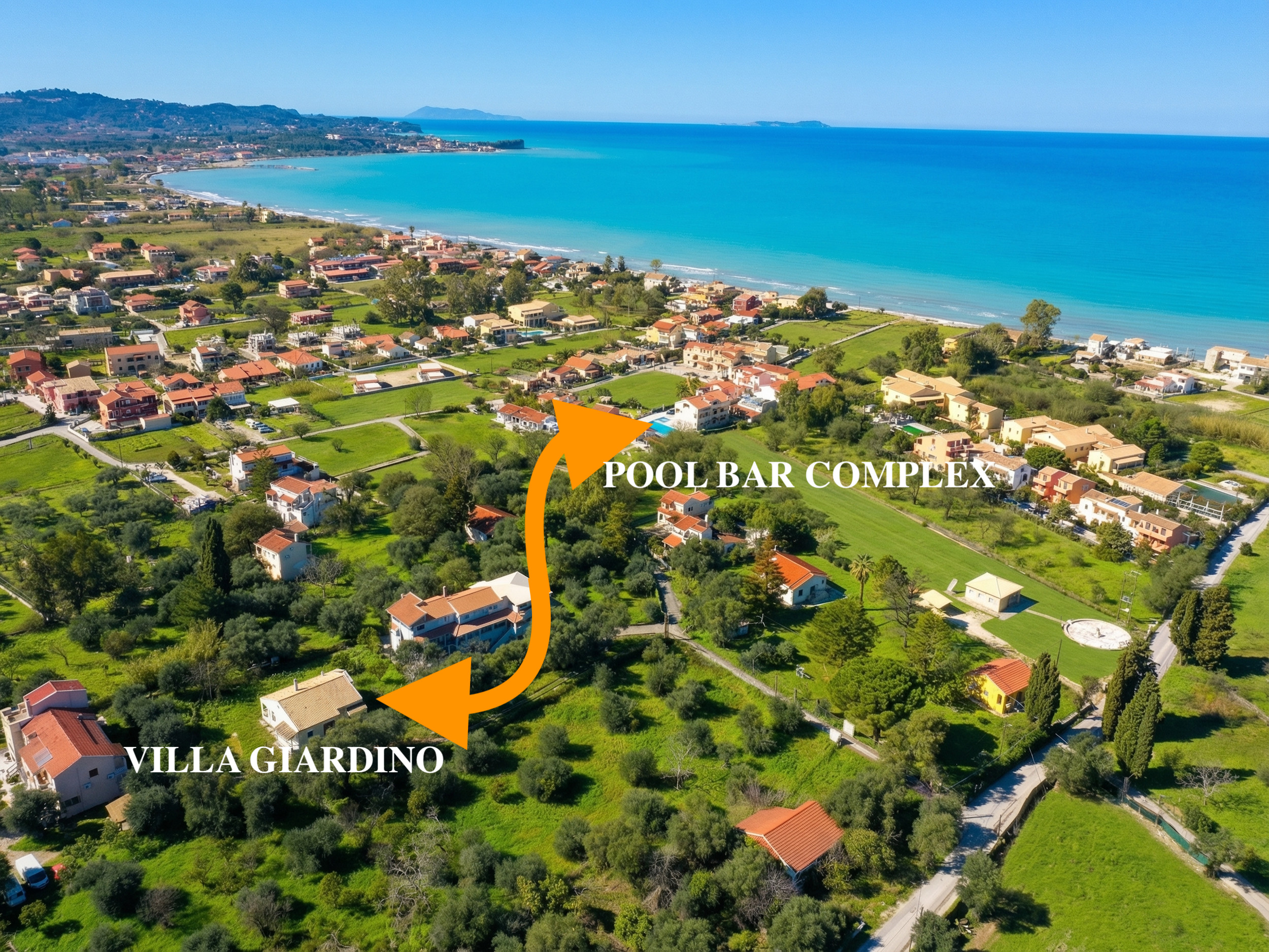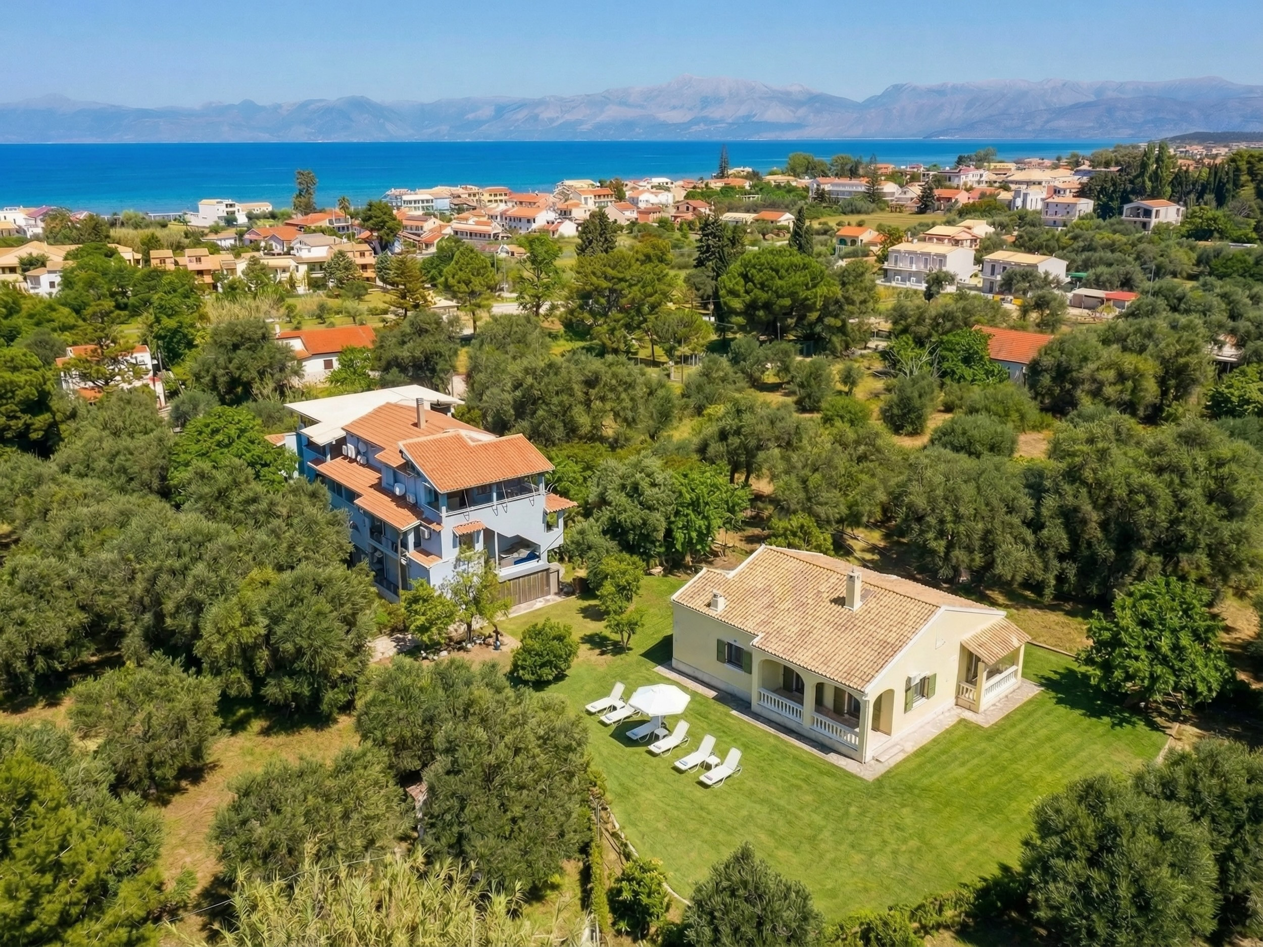 Beautifully located within a peaceful garden, yet just steps away from the beach and the many shops and facilities of Acharavi, Villa Giardino is a beautiful 3-bedroomed holiday home set to impress for its space, sense of freedom and welcoming feeling. Sleeping up to 6 guests in fully air-conditioned interiors, Villa Giardino offers unbeatable value for money in a truly perfect location: a car is not required. Guests will have easy access to pristine beaches, large supermarkets, excellent restaurants and laid back bars all within just a few min walk away. The access to a large swimming pool within a partner complex nearby completes the setting.