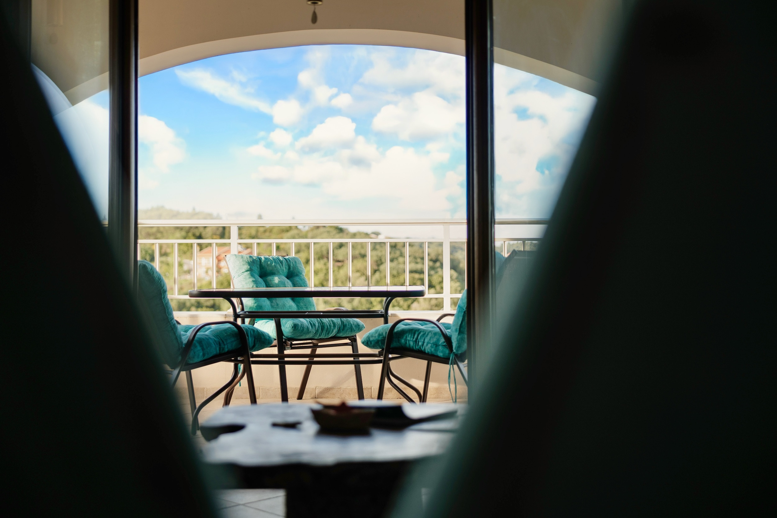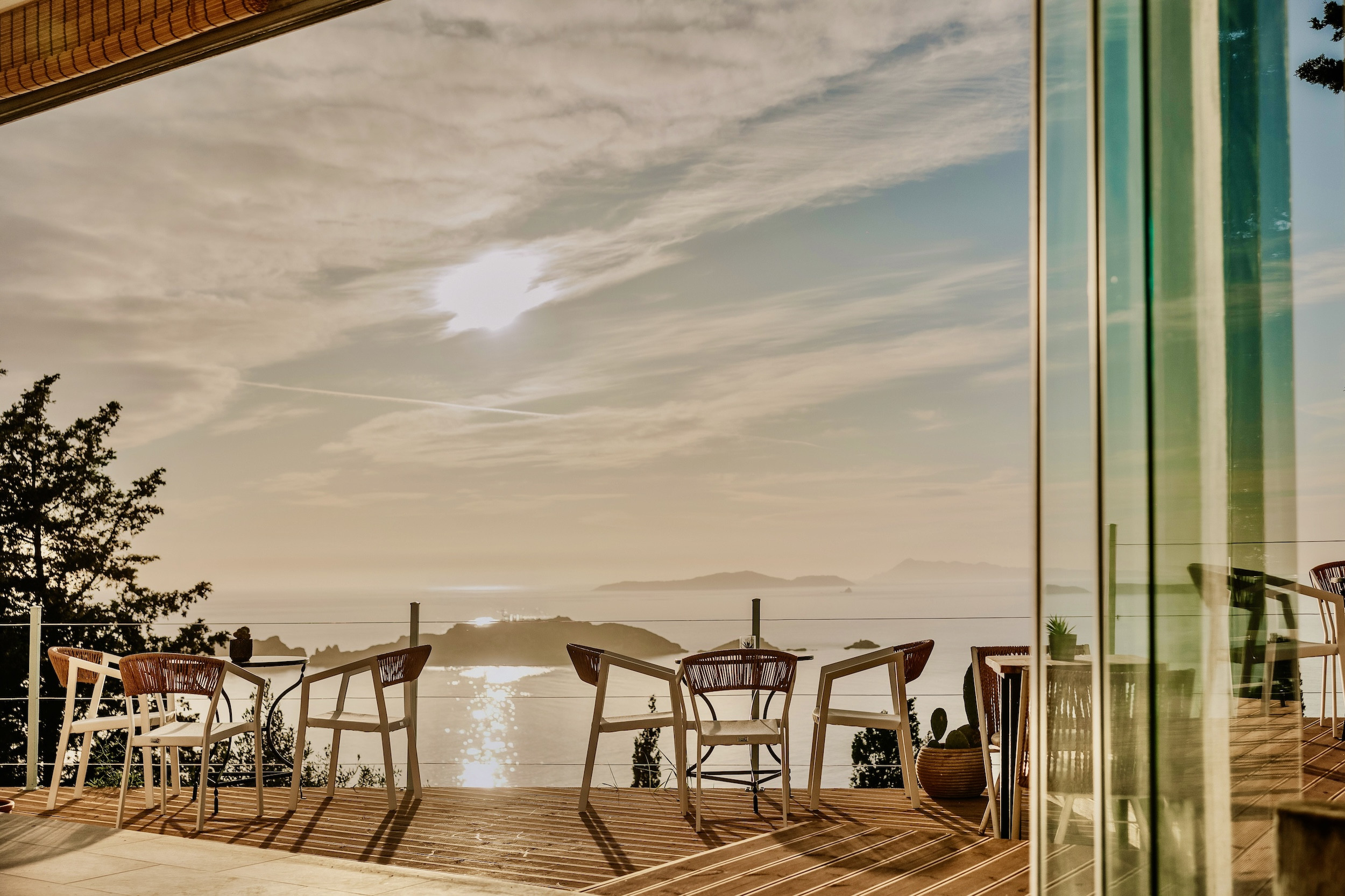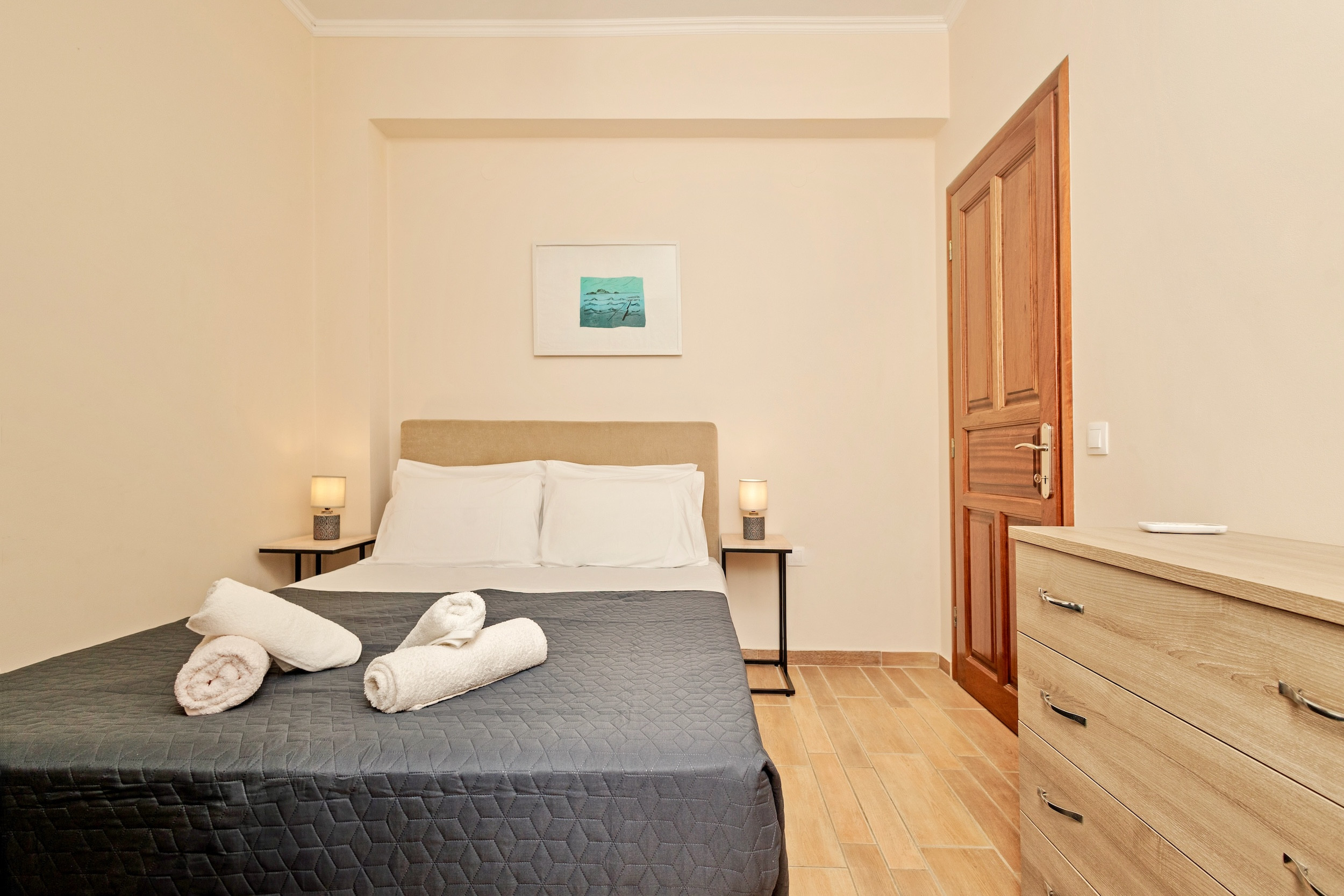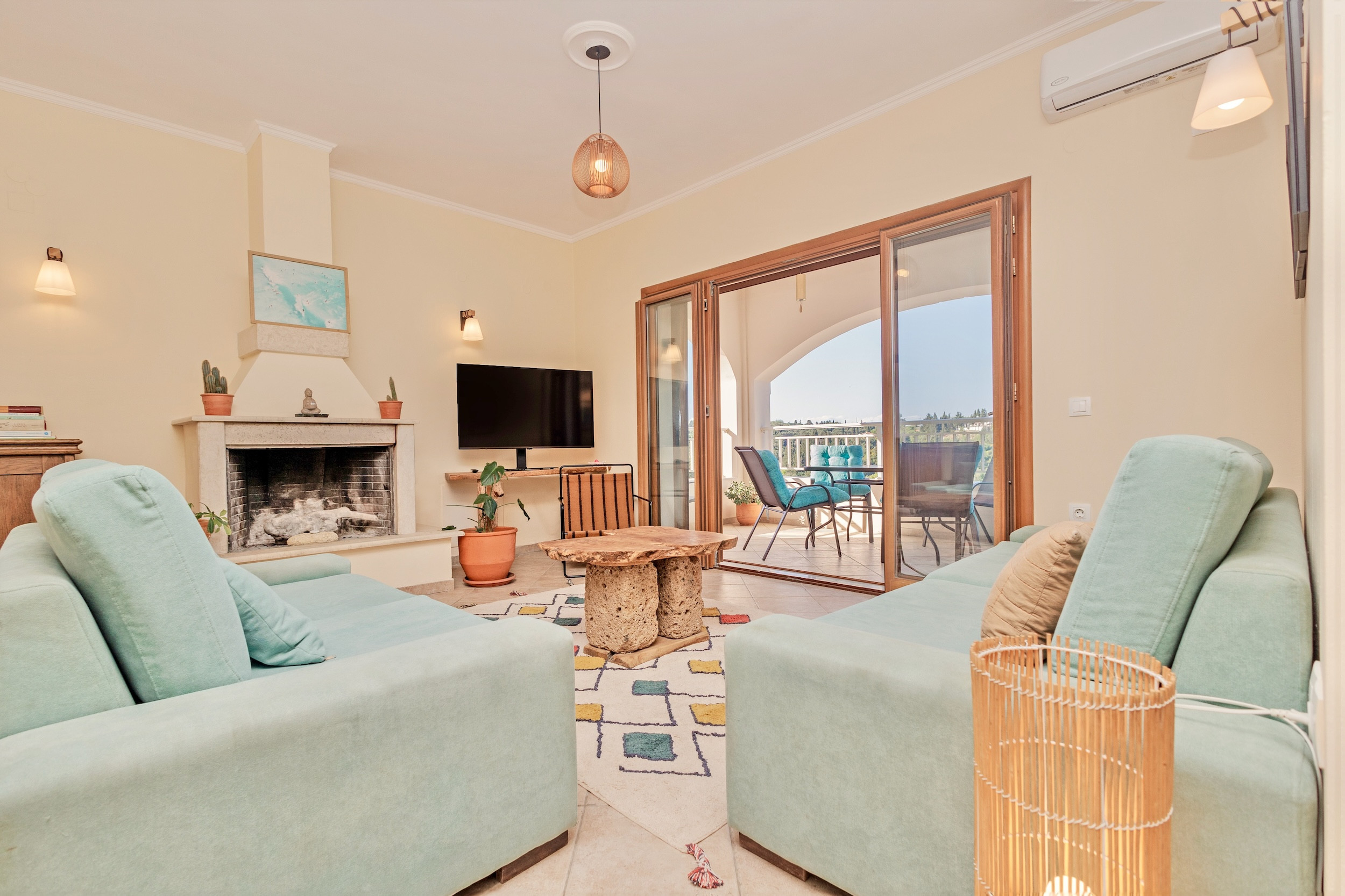 Inside, the property is set over 2 floors, not connected from the inside, rented together as a whole detached villa with private pool. The lower floor comprises a large, self contained studio with double bed, lounge area with extra single sofa bed (9th guest), and a shower room. Large doors open straight to the landscaped outdoor areas. The upper floor comprises the main accommodation. There is a spacious kitchen, fully equipped, a beautifully furnished lounge with dining area (including smart TV), panoramic terraces and 3 bedrooms with 2 bathrooms. The bedrooms are respectively 2 doubles and one twin. One of the double bedrooms has its own e-suite bathroom while the other 2 bedrooms share the second shower room. For the comfort of the guests, the whole property is air-conditioned. The interiors are airy, cozy, welcoming and cheerful, the perfect combination to fully enjoy a Mediterranean holiday.