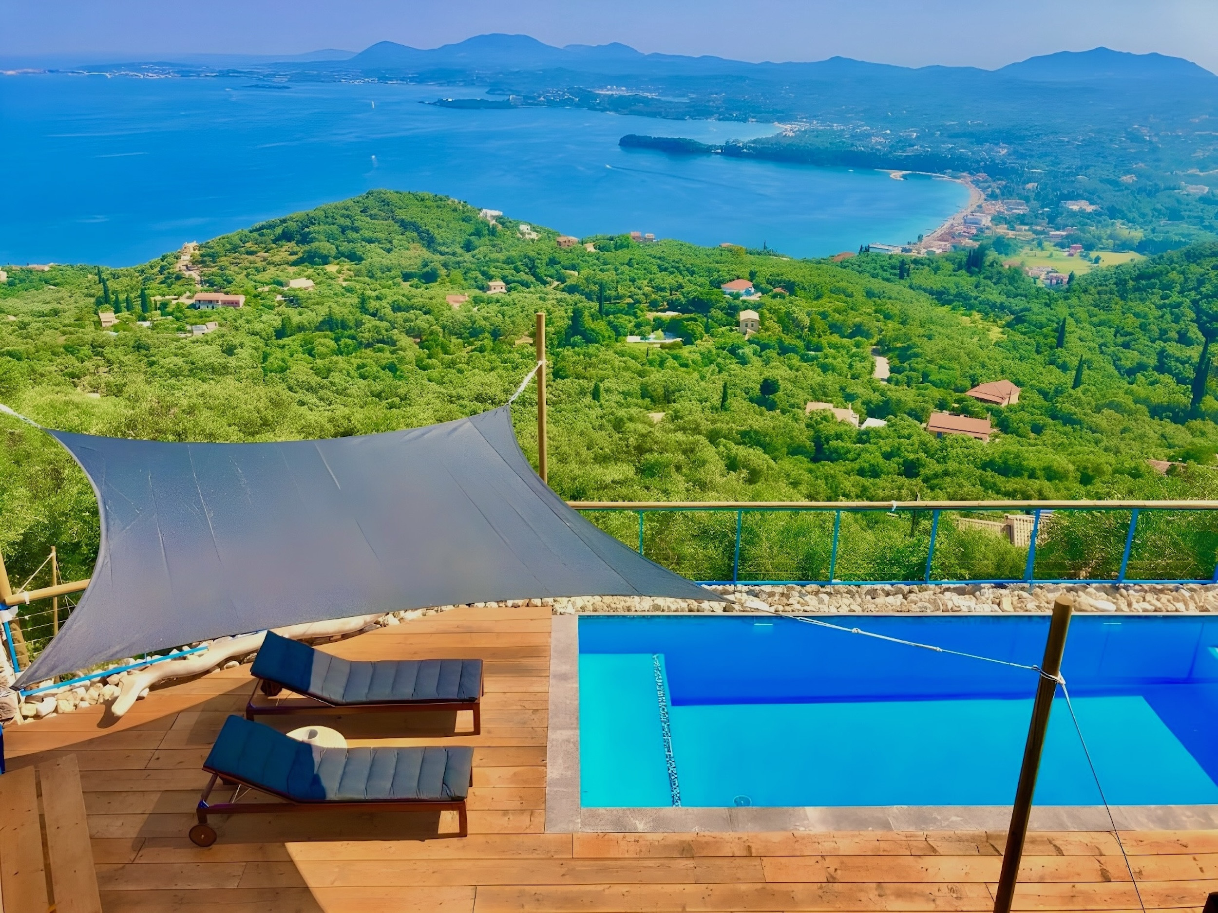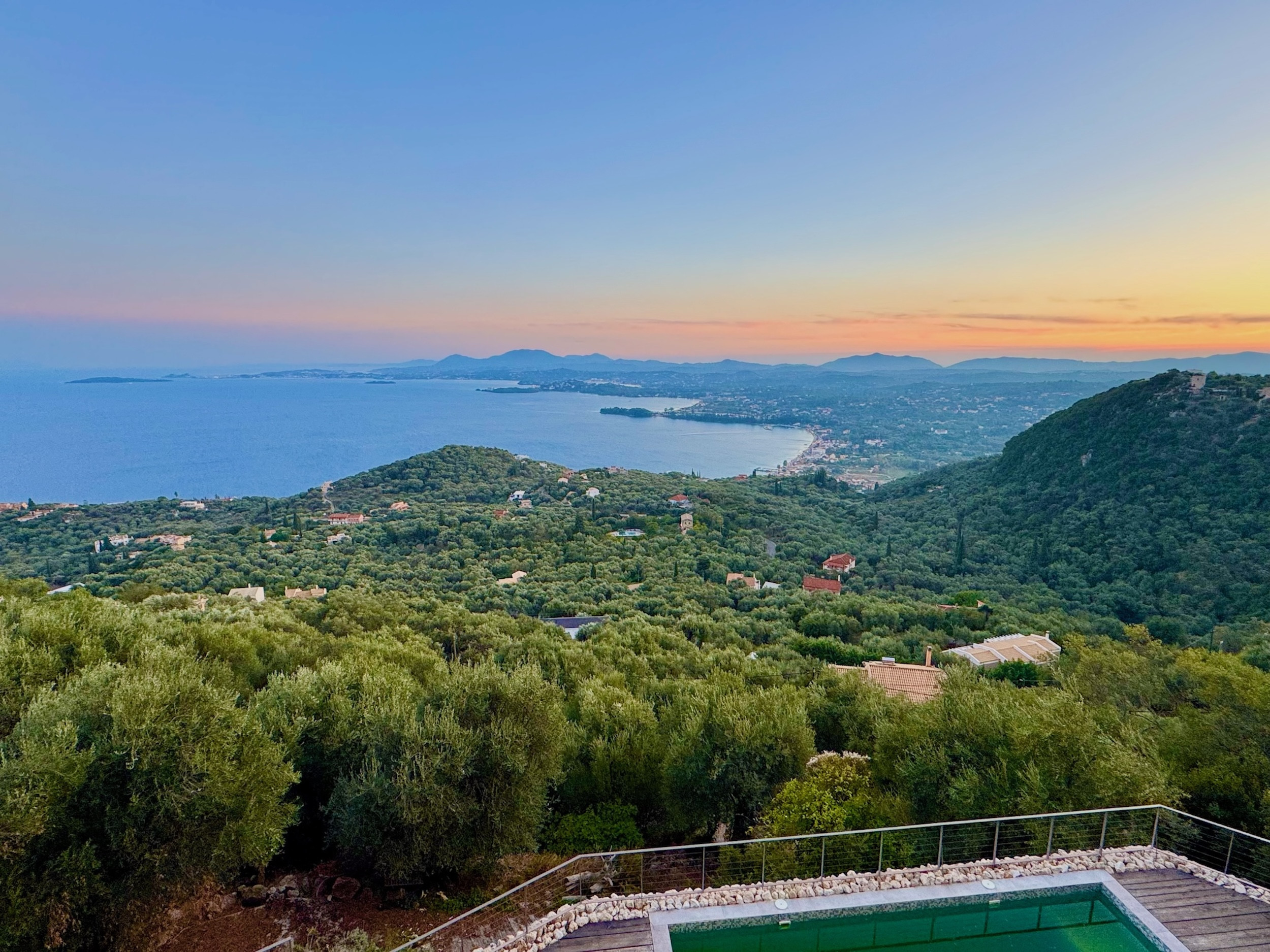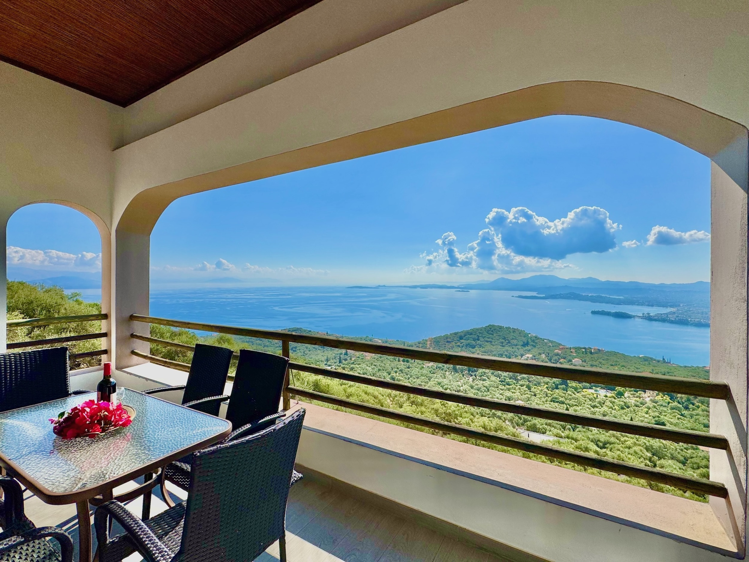 Elysian Hill Villa is probably the most panoramic villa of Northern Corfu. Perfect for large families or group of friends (sleeping up to 12/13 guests) this exciting modern property is set to impress for its views, location, private pool, decor and sense of freedom: you will feel at the top of the World, yet just a few min drive away from the beautiful beach of Barbati, from the lively Ipsos, and 2 steps away from the famous Taverna Agnantio. Wake up every day with the sea in your eyes, relax at sunset with a glass of wine on the extensive terraces, refresh in the private pool: Elysian Hill Villa will amaze you!